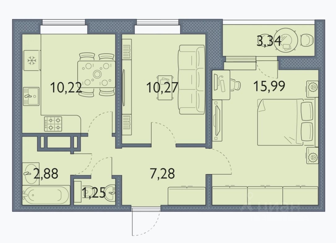 Общая площадь48,8 м²