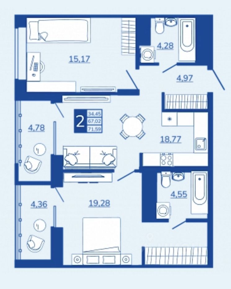 - Квартиры со вторым светом, высота потолков до 3,62 м;