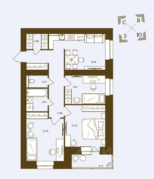 Площадь кухни13 м²