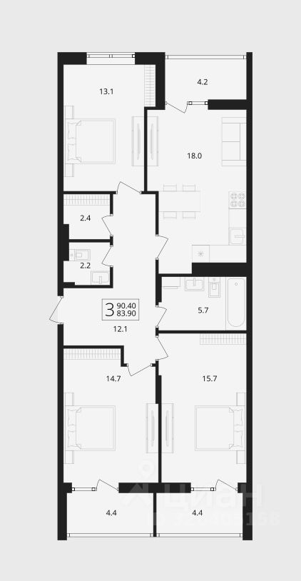 Общая площадь90,4 м²