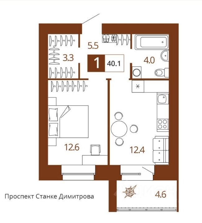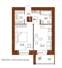 Общая площадь40,1 м²