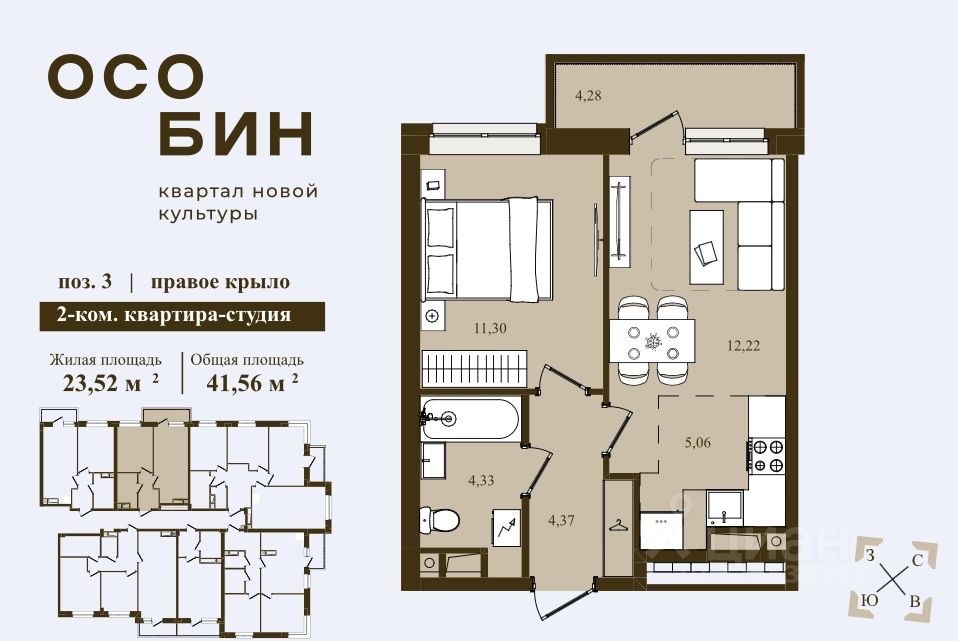 Общая площадь41,56 м²