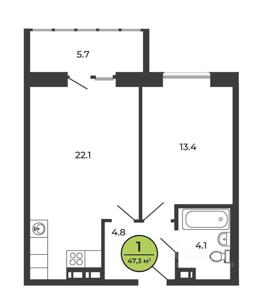Общая площадь46,6 м²