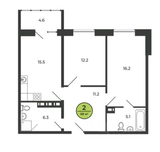 Площадь кухни15,5 м²