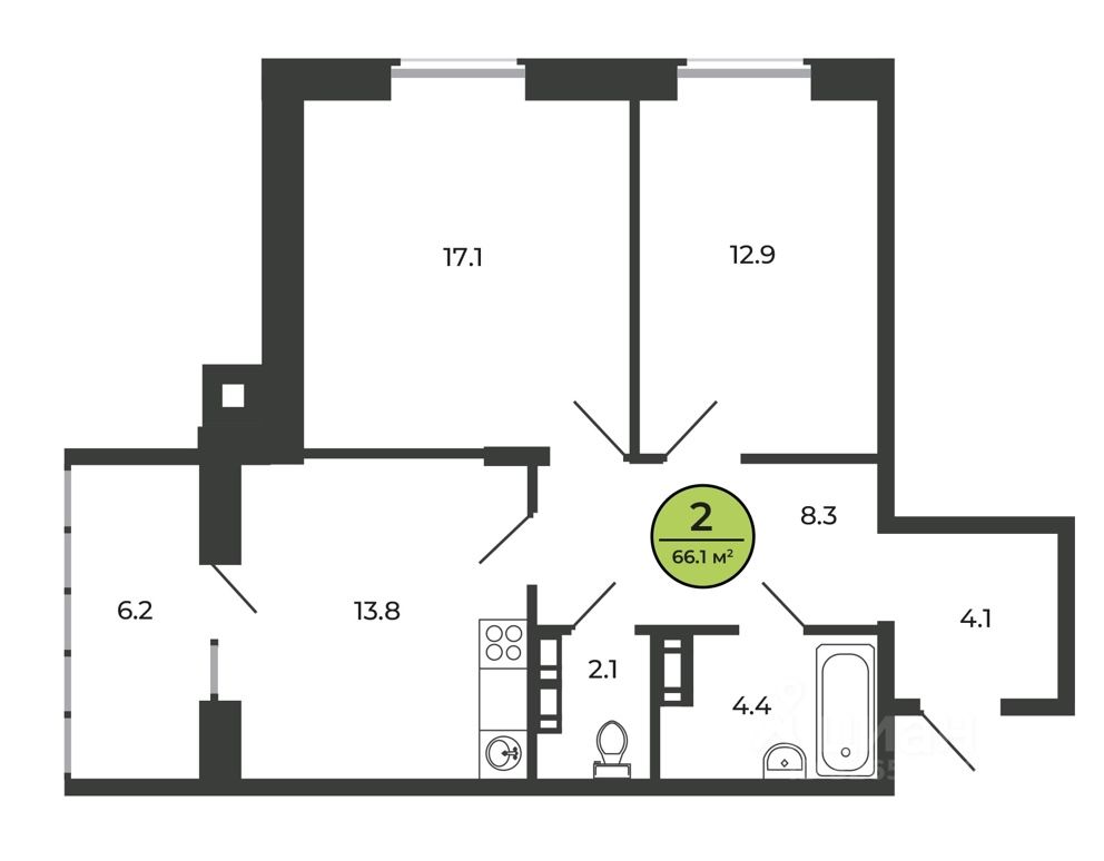 Общая площадь65,3 м²