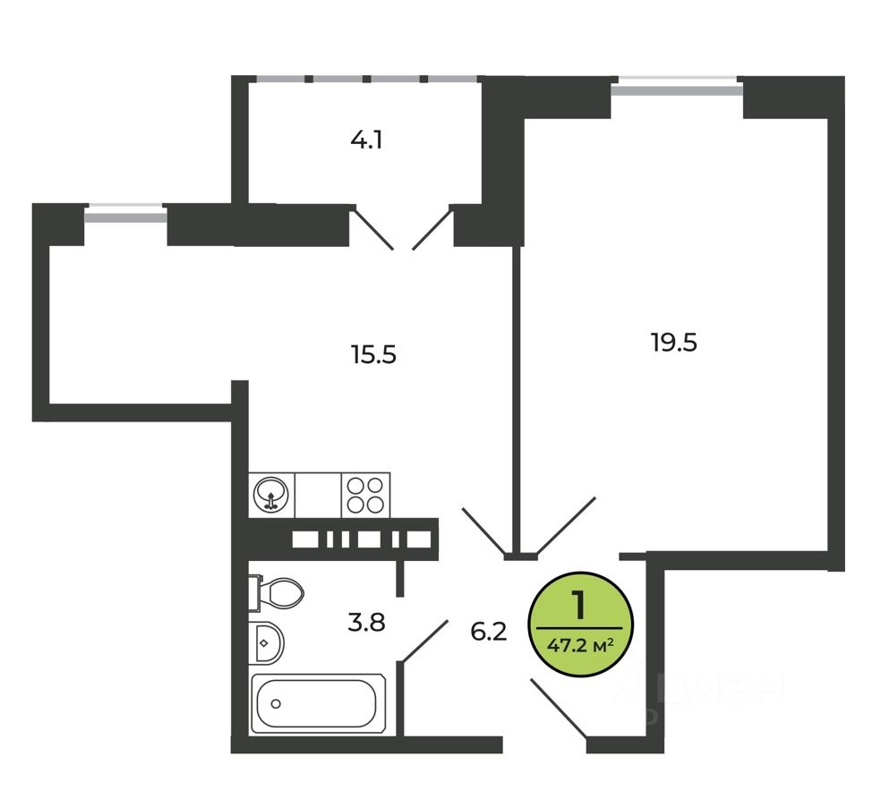 Общая площадь46,6 м²