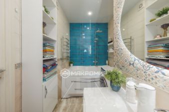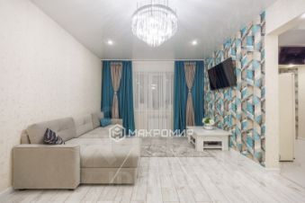 Во всей квартире выполнена отделка высококачественными материалами, каждая деталь продумана до мелочей. Рeгулиpуемoе отoплeние. Напольное покрытие в кухне выполнены из керамогранита, в комнатах и прихожей из ламината 33 класса. Ванная комната и с\у выполнены в современном стиле из плитки. Натяжные потолки оборудованы осветительными приборами разной сложности. Выполнена разводка ТВ и интернет кабелей по квартире с установкой соответствующих розеток. Установлена железная дверь с несколькими степенями защиты, внутренняя накладка полностью соответствует межкомнатным дверям по дизайну. БОНУС - КЛАДОВКА НА ЭТАЖЕ, около 5 метров.