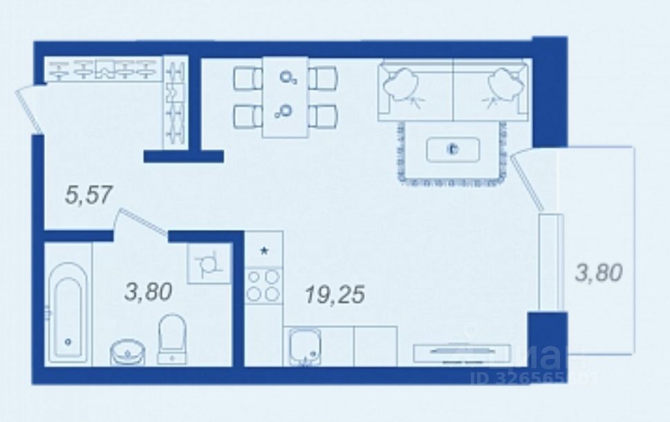 Площадь кухни19,3 м²