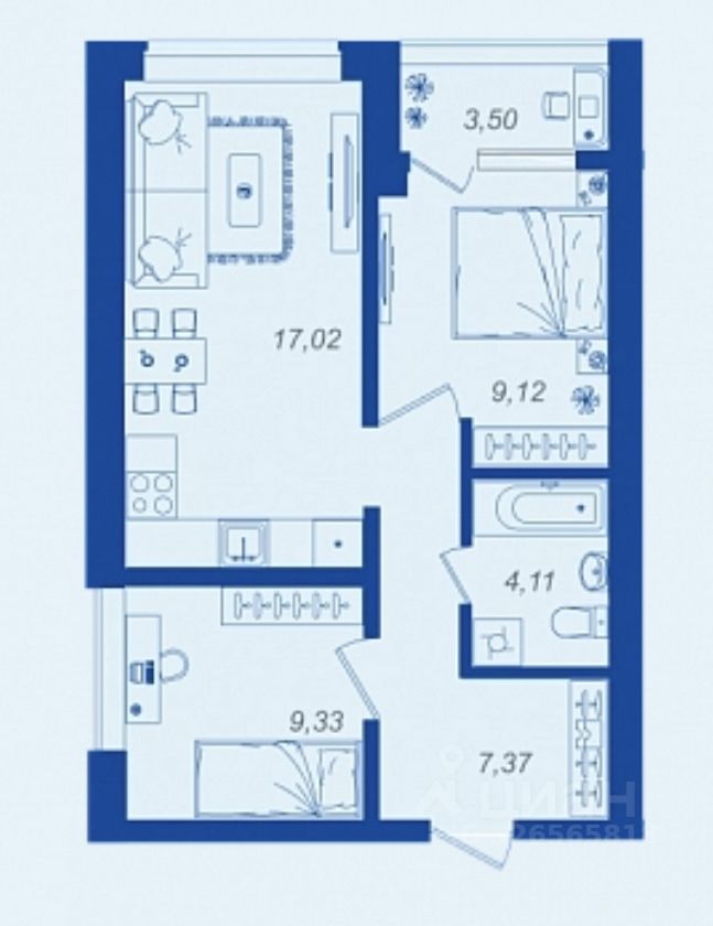 Общая площадь48,7 м²