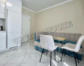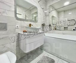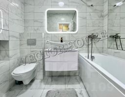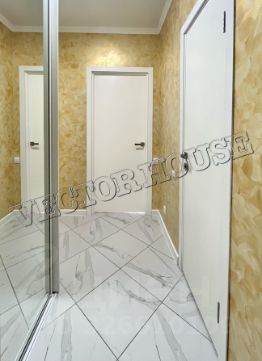 -В квартире выполнен современный ремонт из качественных материалов, в санузле - плитка и кафель с премиум сантехникой, натяжные потолки и точечное освещение с учетом зональностей, теплые полы, панорамные окна ПВХ с ДВОЙНЫМИ стеклопакетами!