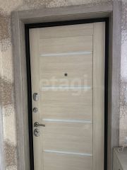 При выходе из лифта мы проходим через тамбур с хорошей дверью. далее в саму квартиру по теплому полу на большую кухню с встраиваемой техникой.