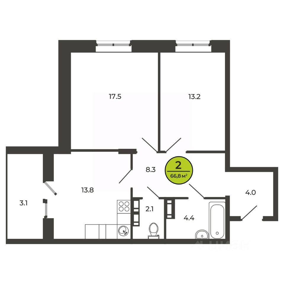 Общая площадь66,3 м²