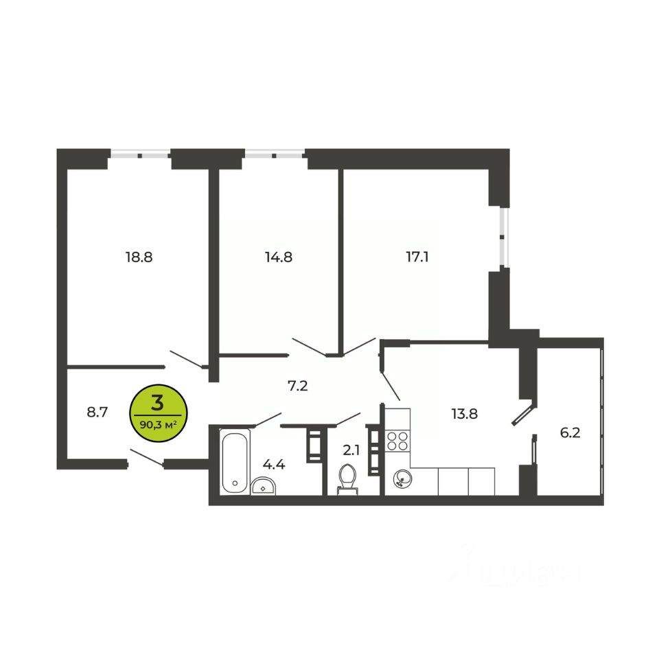 3-комн. от 88,6 м²