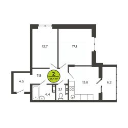 2-комн. от 63,4 м²