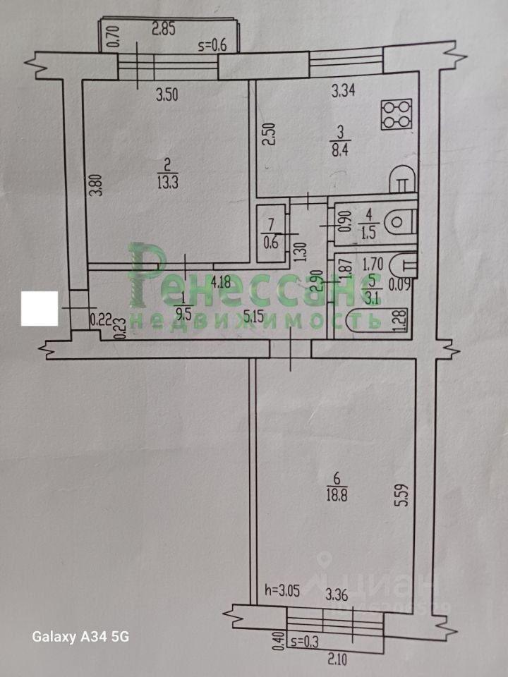 Kирпичный дом. Квартира не угловая, распашонка (окна на две стороны).