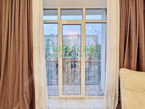 Отличное состояние. Новый капитальный ремонт. 3 метра потолки. Залита стяжка на полу, полностью заменена электрика, выровнены стены по маякам. На полу плитка, ламинат, сан.узел совмещен, в плитке, натяжные потолки с точечным освещением, теплые полы, качественные межкомнатные двери, дорогая и качественная входная дверь. Два французских балкона с выходом из каждой комнаты.