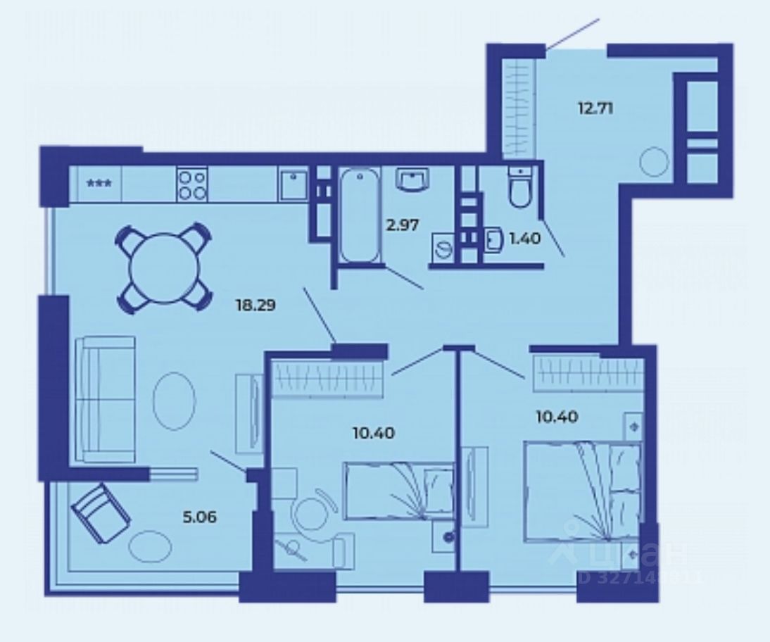 Продается квартира улучшенной планировки (евротрешка) с предчистовой отделкой в ЖК ТРИ БАШНИ