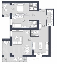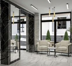 - В квартирах предусмотрены кухни-гостиные, ниши для шкафов, гардеробные.