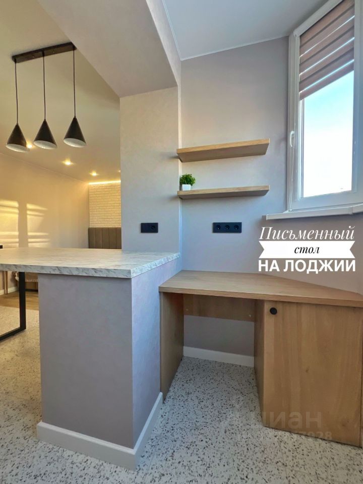 Рабочая зона: стол и места хранения на лоджии.