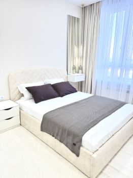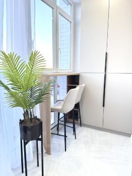 В квартире сделан дизайнерский ремонт, который подчеркивает современный стиль интерьера. Функциональная планировка и наличие лоджии добавляют дополнительные удобства для комфортного проживания. Совмещенный санузел выполнен в светлых тонах и оснащен всей необходимой сантехникой.