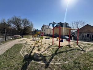 Закрытая территория, просторная парковка, детская площадка.