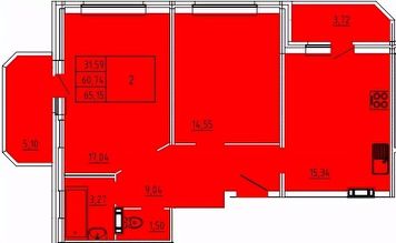 Продается 2-комн. квартира, 65,15 м²