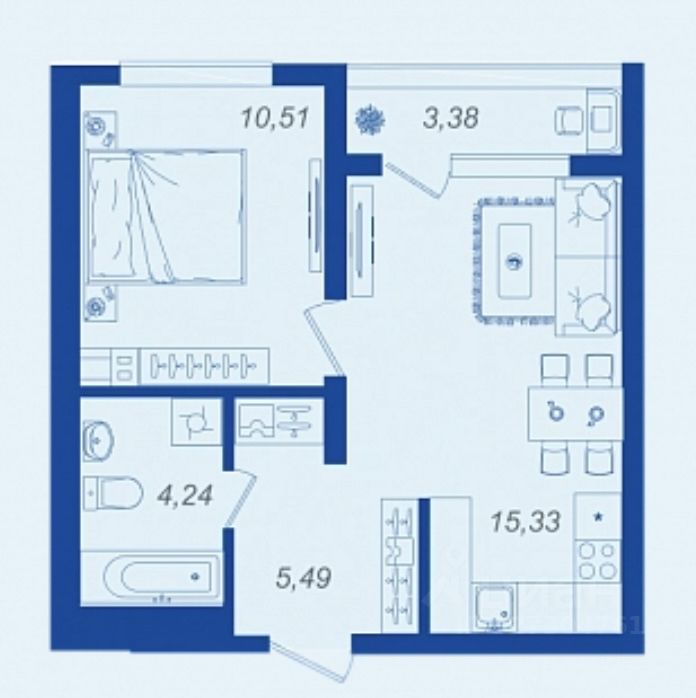 Площадь кухни15,3 м²
