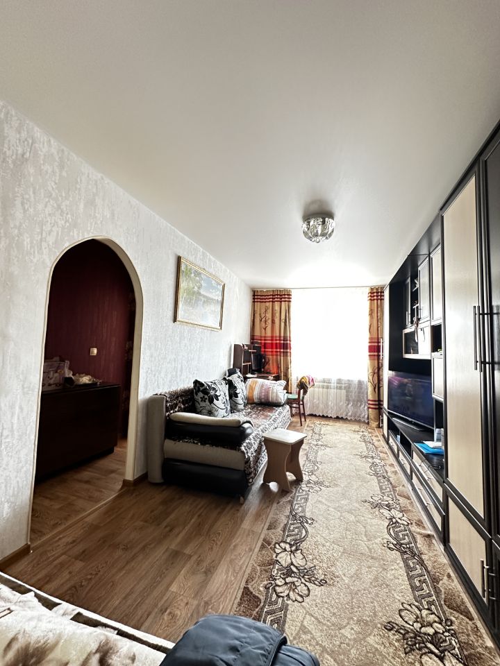 Жилая площадь 17,6 м2, что позволяет разместить и диван, и кровать. Сан. узел совмещен, трубы заменены. Пластиковые окна, натяжной потолок, в ванной комнате плитка. В квартире новая проводка, полы не скрипят. Имеется кладовка. Без балкона. Неугловая. Окна во двор.