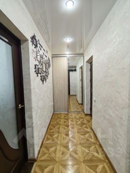 Большая прихожая со встроенным зеркальным шкафом достаточно места для хранения вещей.