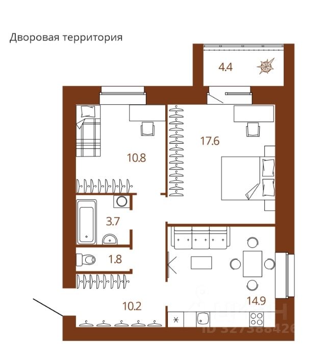Площадь кухни14,9 м²