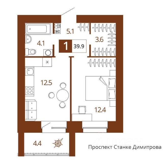 Общая площадь39,9 м²