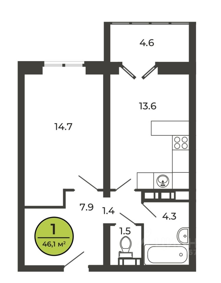 Общая площадь45,7 м²
