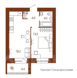 Продается 1-комн. квартира, 41,6 м²