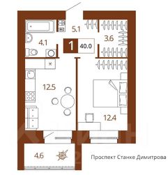 Продается 1-комн. квартира, 40 м²
