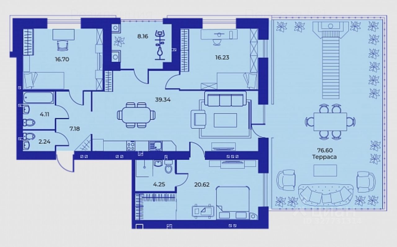 КВАРТИРА С СОБСТВЕННОЙ ПРОСТОРНОЙ ТЕРРАСОЙ