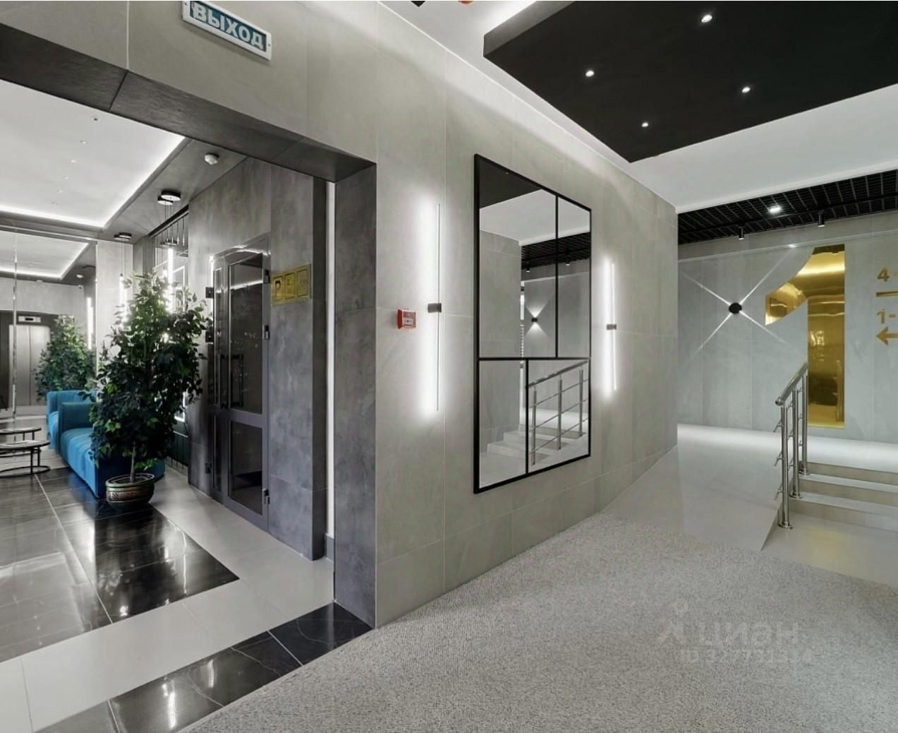 На первом этаже расположен просторный холл с зоной ресепшн. Отделка холла выполнена по индивидуальному дизайн-проекту с использованием премиальных материалов.