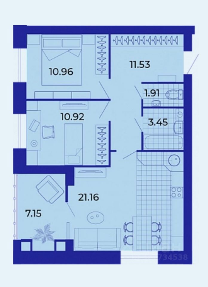 - Во всех жилых помещениях высокие потолки.