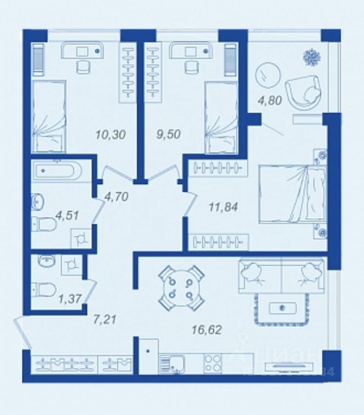 Общая площадь68,45 м²