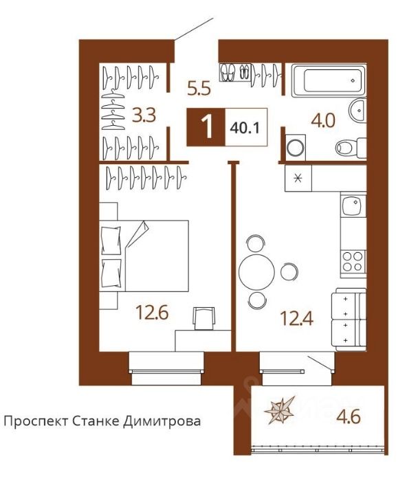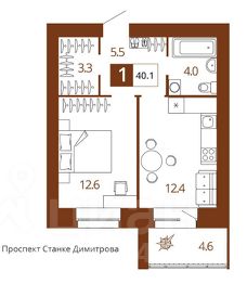 Общая площадь40,1 м²