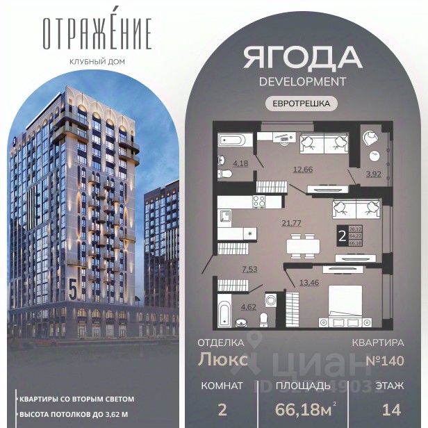 Подходит под семейную, айти, военные ипотеки. Работаем со всеми видами сертификатов. Сдача - лето 2028 года. Архитектурный облик клубного дома "ОТРАЖЕНИЕ" в полной мере выражает глубокую философию неоклассицизма, в основе которой - красота, удовольствие и комфорт. В рельефной пластике экстерьеров корпусов особенно эффектно выделяется арочный стиль, его оформление вдохновлено современным искусством. Элементы умного дома; Квартиры со вторым светом, высота потолков до 3,62 м; Дизайнерская отделка холлов; Кладовые на этажах; Биометрический замок с отпечатком пальца; Умный ключ система бесключевого доступа в холлы и во двор; Домофонная система с удалённым доступом; Увеличенная высота входных дверей; Кирпично-монолитный дом; Квартиры с террасами; Архитектурная подсветка фасада. На первом этаже предусмотрена торговая галерея, призванная создать комфортную инфраструктуру для жизни. Зона коворкинга и тихого отдыха в центре двора. Авторы концепции двора "Отражение" объединили две стихии: природу и город. Здесь каждый найдет для себя идеальный отдых- провести будний вечер или уик-энд: уютно расположиться на лужайке с пледом и корзиной для пикника, заняться йогой или поработать удаленно за рабочем местом на природе. Оформление ипотеки от банков-партнёров в офисе отдела продаж или дистанционно. ЕСТЬ ВЫБОР ЭТАЖЕЙ И ПЛАНИРОВОК!!!Наличие квартир и цена актуальна на момент публикации!!!!! Подходит под семейную ипотеку 6% Возможен ремонт от застройщика (сумму ремонта можно включить в ипотеку) Показ в любое удобное время.