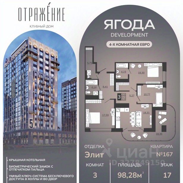 Подходит под семейную, айти, военные ипотеки. Работаем со всеми видами сертификатов. Сдача - лето 2028 года. Архитектурный облик клубного дома "ОТРАЖЕНИЕ" в полной мере выражает глубокую философию неоклассицизма, в основе которой - красота, удовольствие и комфорт. В рельефной пластике экстерьеров корпусов особенно эффектно выделяется арочный стиль, его оформление вдохновлено современным искусством. Элементы умного дома; Квартиры со вторым светом, высота потолков до 3,62 м; Дизайнерская отделка холлов; Кладовые на этажах; Биометрический замок с отпечатком пальца; Умный ключ система бесключевого доступа в холлы и во двор; Домофонная система с удалённым доступом; Увеличенная высота входных дверей; Кирпично-монолитный дом; Квартиры с террасами; Архитектурная подсветка фасада. На первом этаже предусмотрена торговая галерея, призванная создать комфортную инфраструктуру для жизни. Зона коворкинга и тихого отдыха в центре двора. Авторы концепции двора "Отражение" объединили две стихии: природу и город. Здесь каждый найдет для себя идеальный отдых- провести будний вечер или уик-энд: уютно расположиться на лужайке с пледом и корзиной для пикника, заняться йогой или поработать удаленно за рабочем местом на природе. Оформление ипотеки от банков-партнёров в офисе отдела продаж или дистанционно. ЕСТЬ ВЫБОР ЭТАЖЕЙ И ПЛАНИРОВОК!!!Наличие квартир и цена актуальна на момент публикации!!!!! Подходит под семейную ипотеку 6% Возможен ремонт от застройщика (сумму ремонта можно включить в ипотеку) Показ в любое удобное время.