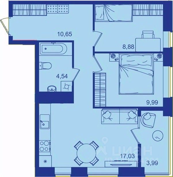 Общая площадь54,8 м²