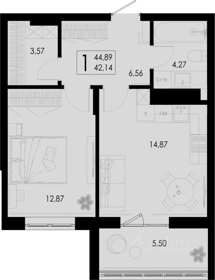 44,89 м²