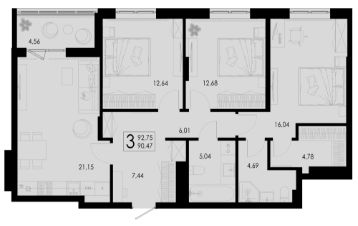 Общая площадь92,75 м²