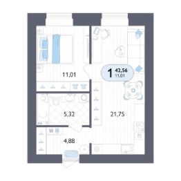 Продаётся 1-комнатная квартира в строящемся доме (Дом 1), срок сдачи: IV-кв. 2027, общей площадью 42.56 кв.м., на 1 этаже. Новый жилой комплекс "Дом на Бежицкой" от застройщика "Мегаполис-Строй" расположен по адресу: г. Брянск, ул. Бежицкая