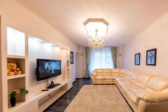 Евроремонт со вкусом — нейтральные тона, качественная отделка, всё сделано с вниманием к деталям. Высокие потолки 2,8 м добавляют воздуха и лёгкости.