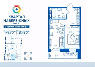 Продаётся 2-комнатная квартира в сданном доме (Поз. 2), срок сдачи: III-кв. 2025, общей площадью 40.24 кв.м., на 14 этаже. Это комплекс жилых зданий комфорт-класса с огороженной территорией по всему периметру с системой безопасности и видеонаблюдением. Он расположен в экологически чистом месте, где открывается прекрасный вид на реку Десну - на первой береговой линии.