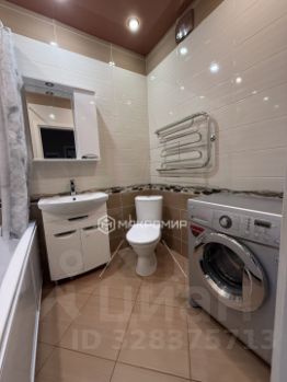 Современный санузел: Совмещенный санузел, отделанный плиткой, оснащен современной сантехникой.