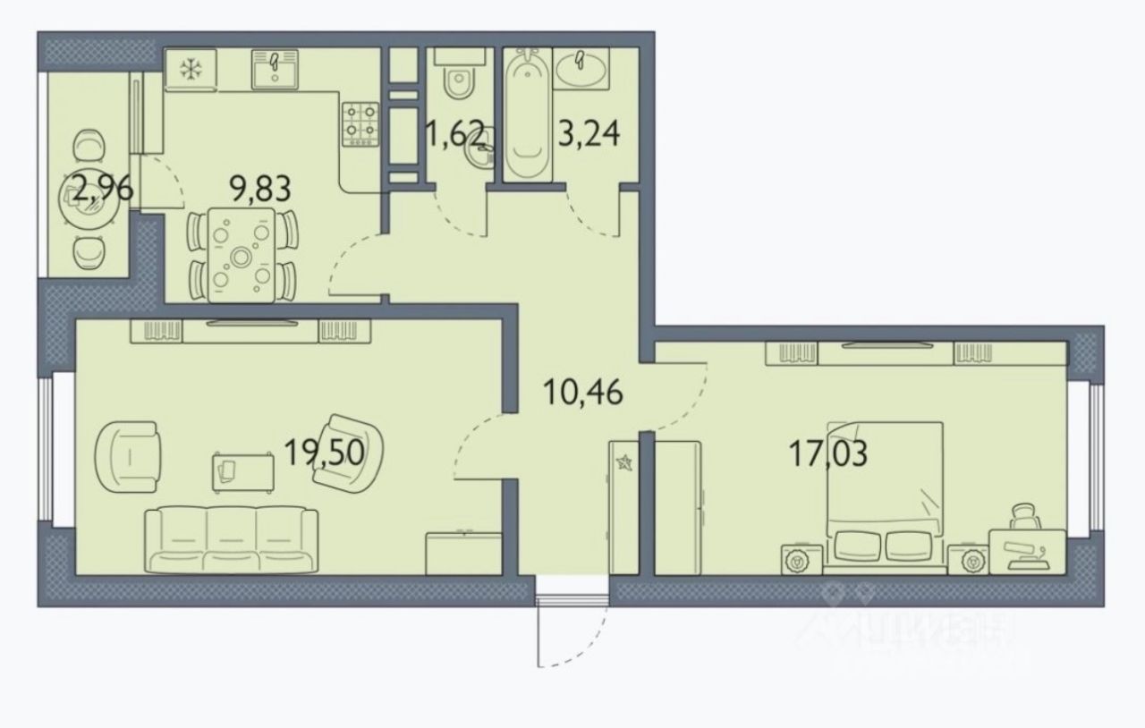 Общая площадь62,5 м²