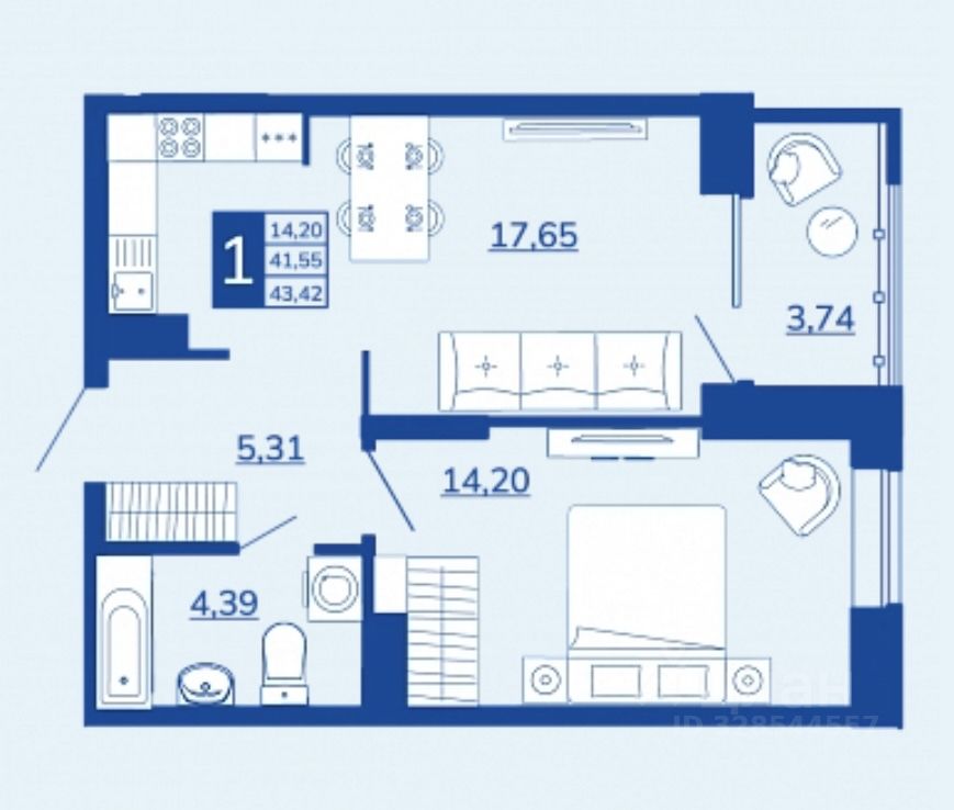 Общая площадь43,42 м²